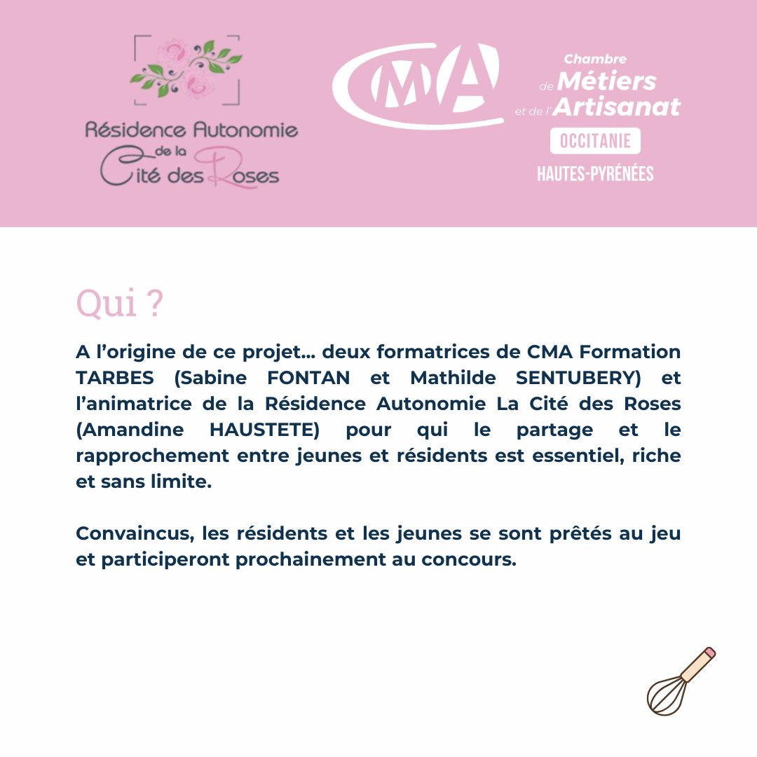 Nous avons le plaisir de vous faire part de l'organisation d'un événement gourmand et plein d’émotions : un concours intergénérationnel de pâtisserie réunissant de jeunes apprentis passionnés et des résidents riches de savoir-faire et de souvenirs sucrés !
