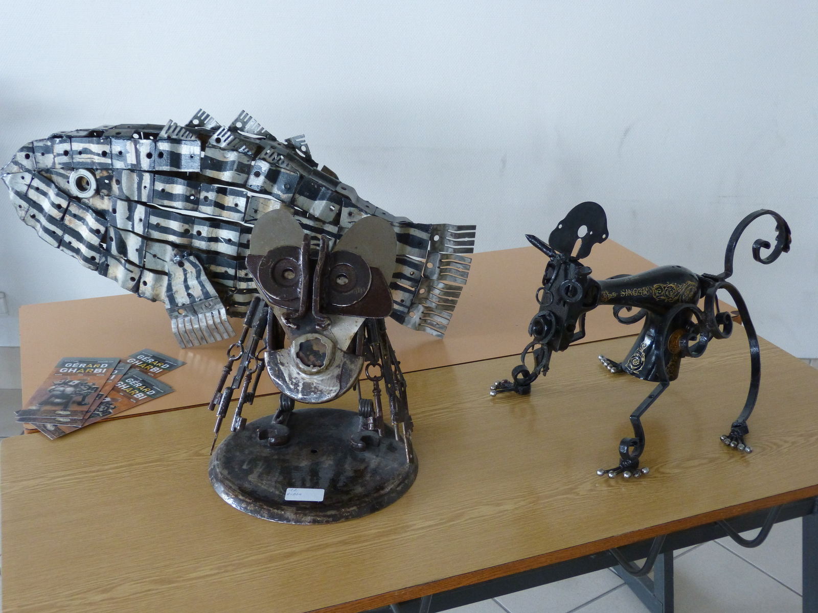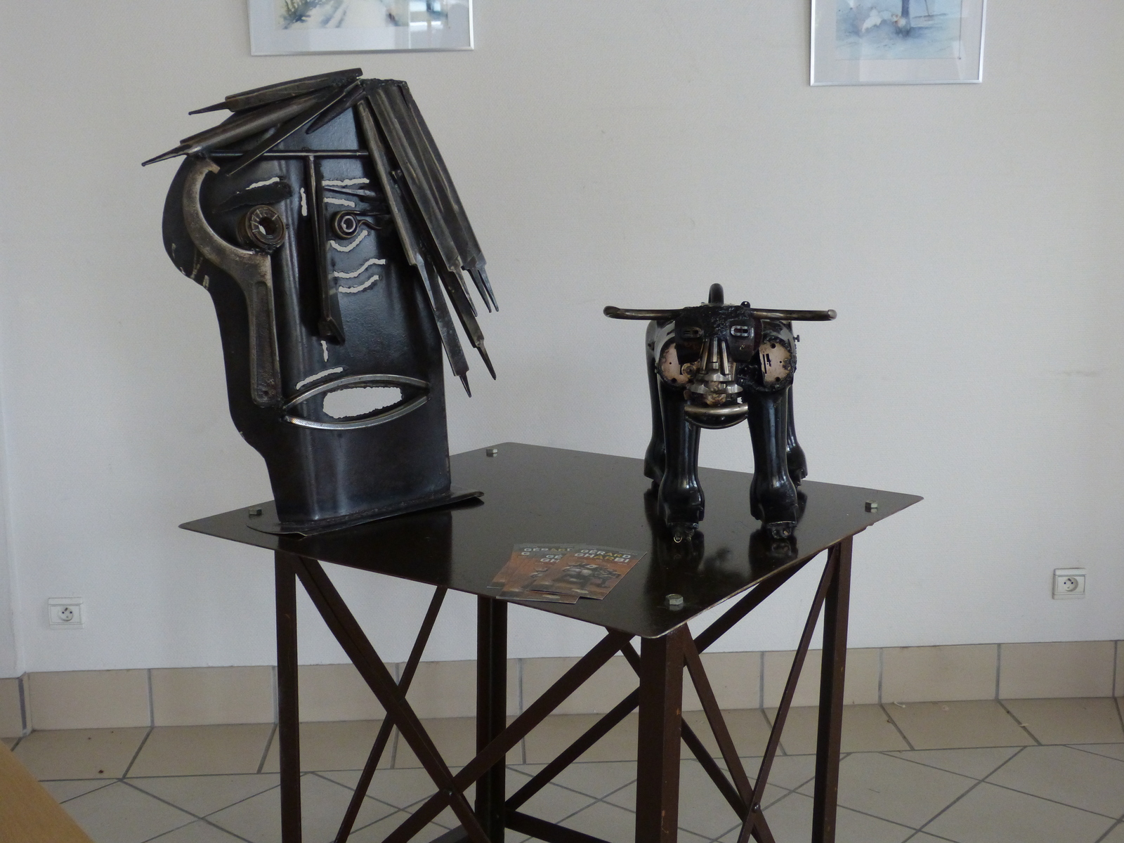 Aujourd’hui, nous sont proposés les fleurs et objets réalisés par le sculpteur Jean-François CRANCE ; les assemblages surprenants de pièces vouées à l’oxydation de Gérard GHARBI ; s’offrent à nos regards et stimule nos envies les créations de Jeanne RANSON ; le tout sous le regard velouté des aquarelles de Françoise CARRERE.